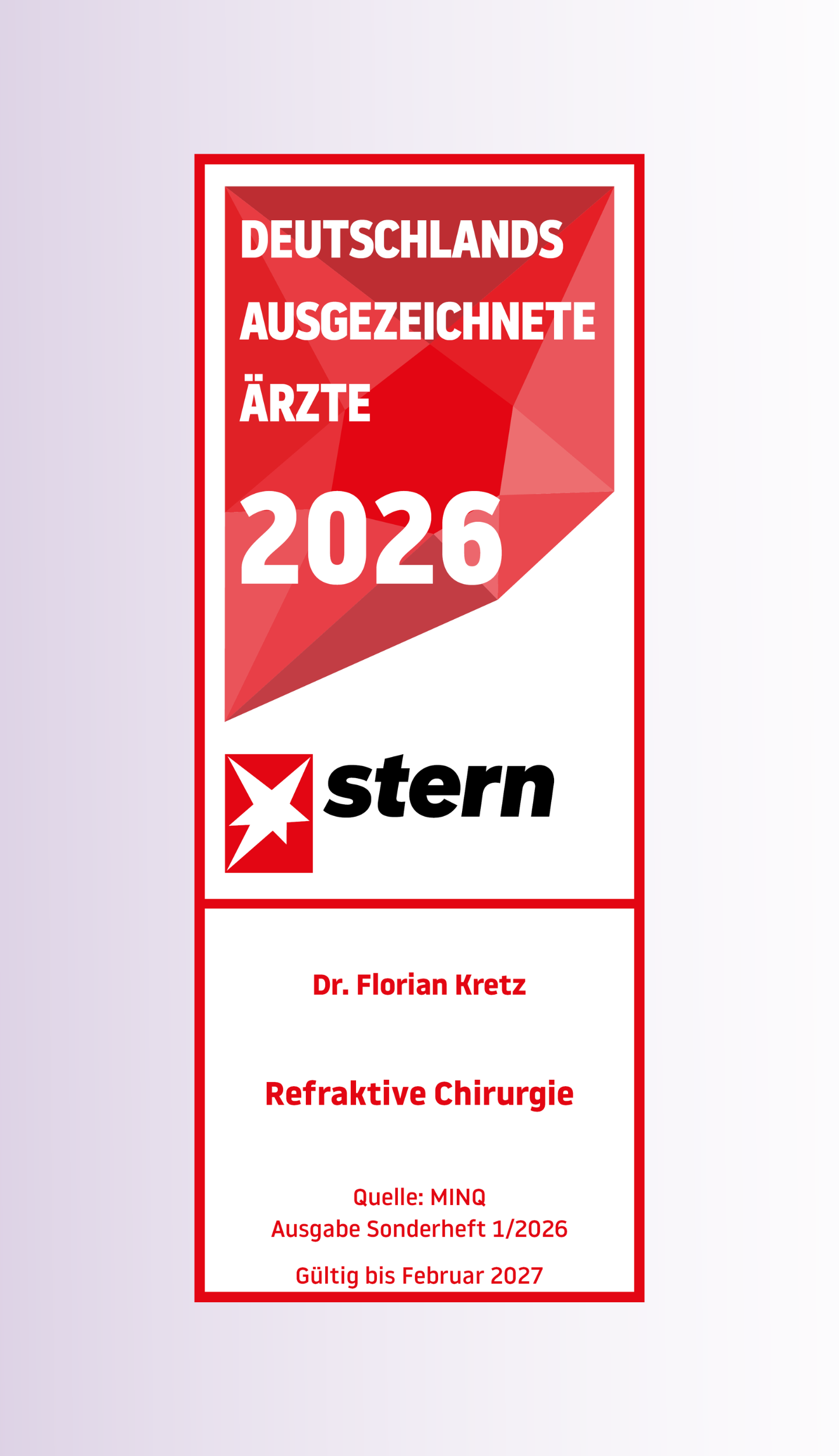 Dr. Kretz begann sein Medizinstudium 2001 und absolvierte währenddessen Auslandssemester in den USA sowie den West Indies. 2007 schloss er sein Studium erfolgreich an der Universität Ulm ab. Für die Spezialisierung auf die Ophthalmologie entschied er sich für die Augenklinik des Universitätsklinikums Heidelberg, eine der renommiertesten Einrichtungen ihrer Art. Dort arbeitete er später auch als Oberarzt und begann sich auf Graue Star Operationen, refraktive Chirurgie und die Forschung im Bereich neuer operativer Methoden zu spezialisieren. Im Anschluss ließ er sich mit einem Kollegen nieder und baute den gmeinsamen Klinikverbund mit mehreren Standorte in Nordrheinwestfalen und Niedersachsen auf.