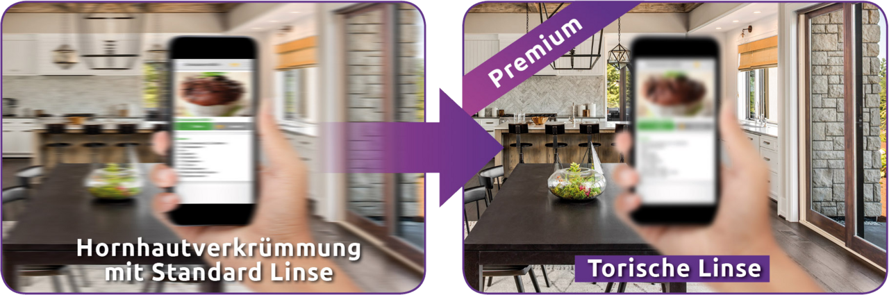 Vergleich: Sehen mit Hornhautkrümmung
